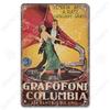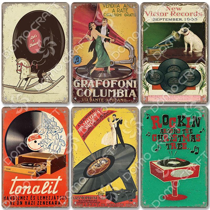 Retro Plakat Muzyczny Metalowe Tabliczki Blaszane Płyta Winylowa Fonograf Metalowa Plakietka Dekoracja Ścienna Vintage do Kawiarni Baru Pubu Salonu Domu