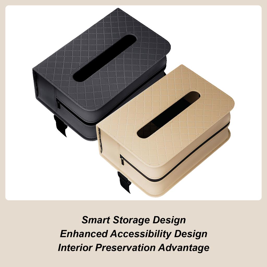 Car Mounted Tissue Box Large Rectangle PU Leather Car Napkin Holder Car Seat Back Hanging Large Capacity Paper Box