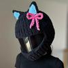 Motorcycle Helmet Cover Cute Cat Ear Helmet Knitted Cover Handmade Thick Velvet Hat Cover for Women Cosplay Styling