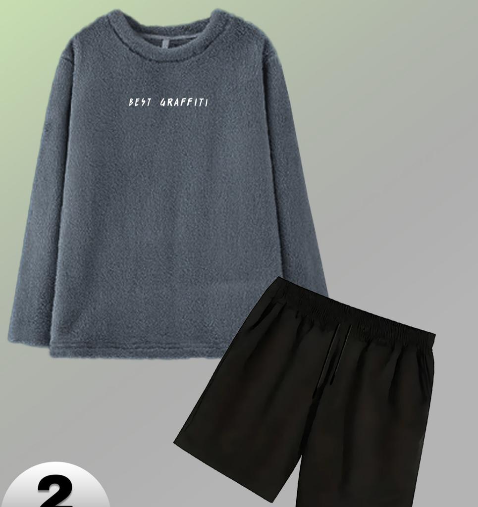 Men's Loose Flannel Loungewear Set, Comfortable