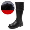 Johnature Skórzane Retro Damskie Kozaki Rycerskie na Grubej Podeszwie Okrągły Nosek Klamra Paska Wysokie Kozaki