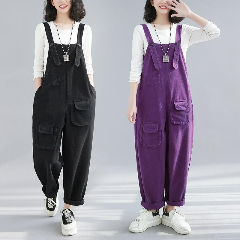 Autumn Literature and Art Large Size Loose and Thin Dark Denim Overalls Women's Harem Pants