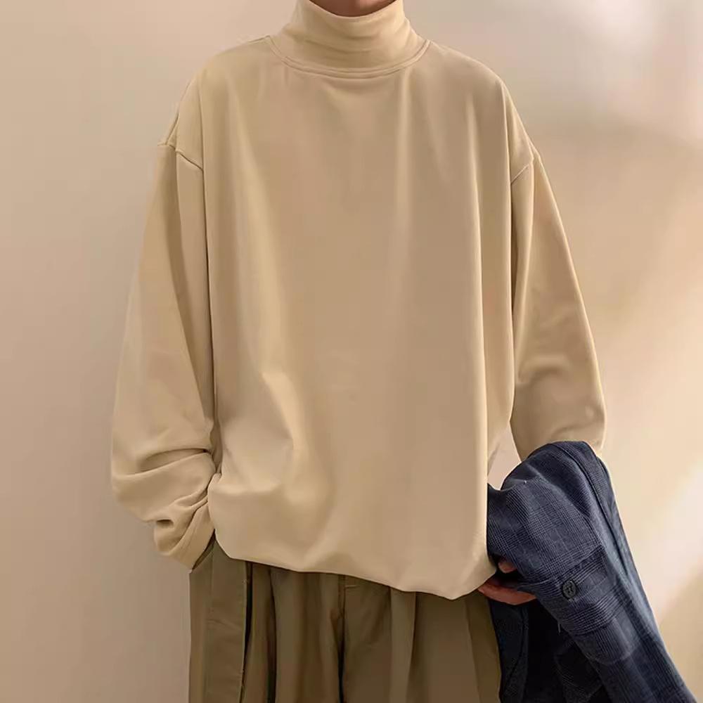 Męska Jednolita Kolorowa Warstwa Bazowa Jesienna Moda Półwysoki Dekolt Długi Rękaw T-Shirt Unisex Wszechstronna Odzież Codzienna Idealna do Noszenia Warstwowego z Bransoletką