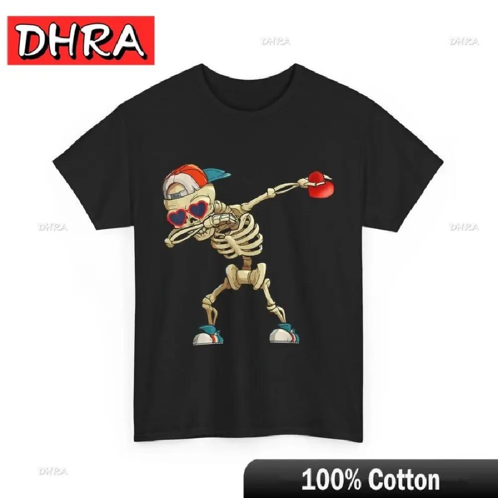 Cool Skeleton Dab T-Shirt Fun Cartoon Design with Heart Glasses Minimalist Bold Tshirts Unique Urban Simple Tee Shirt Trippy