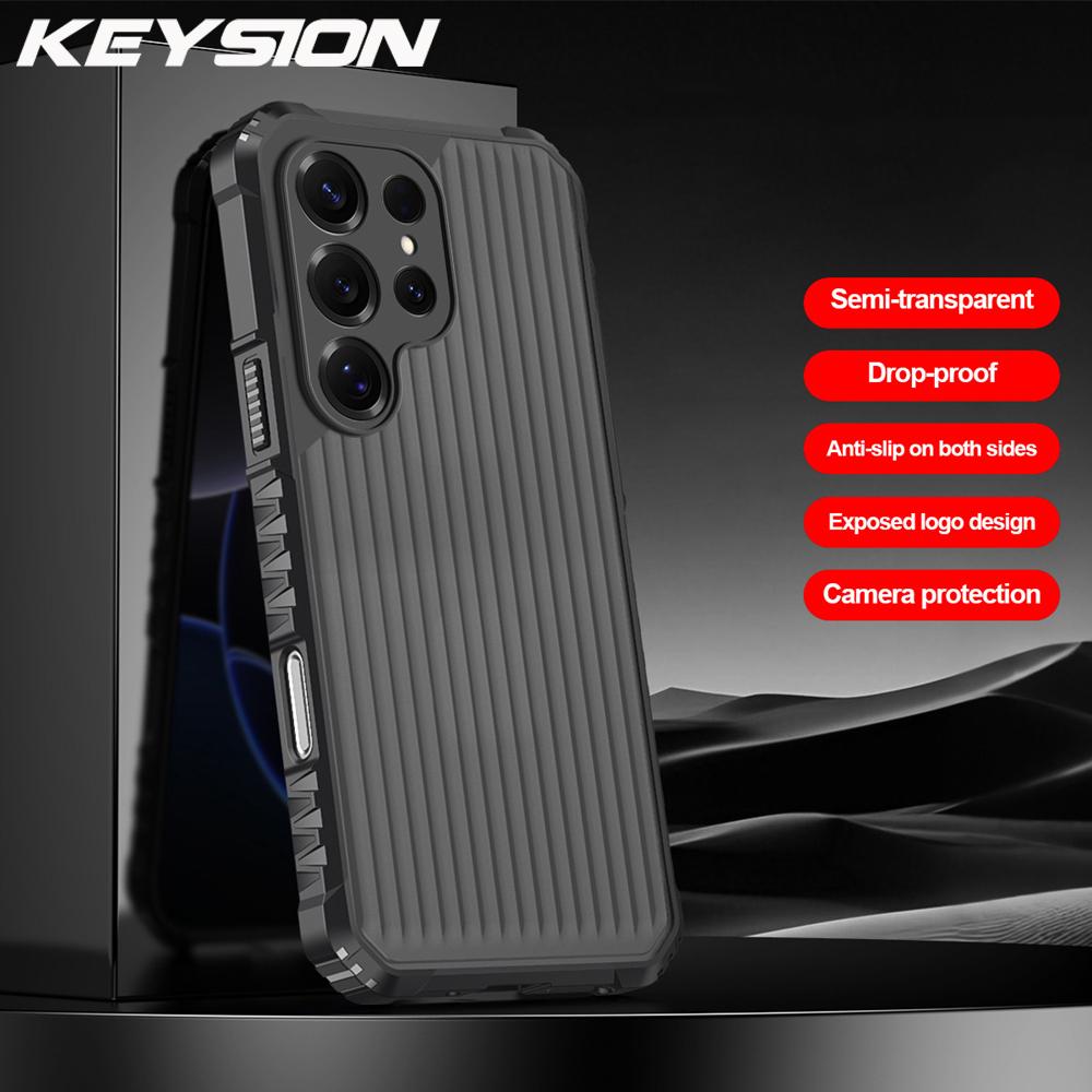KEYSION Wytrzymałe, odporne na wstrząsy etui na telefon Samsung S23 S24 S25 Ultra Silikon+PC Półprzezroczysta matowa osłona dla Galaxy S25 S21 FE