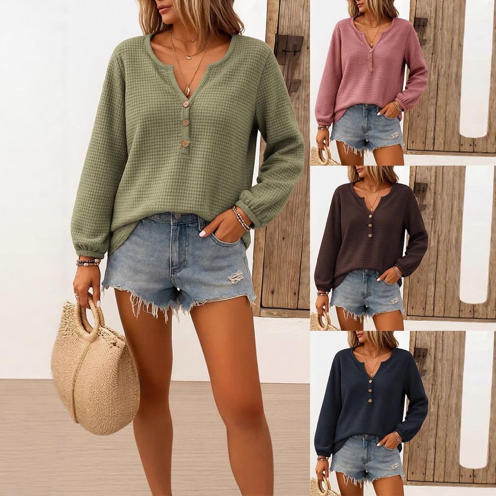 2025 New Women's Casual V-neck Door Tube Long-sleeved Pullover Loose Solid Color Multi-color Women's Sweatshirt