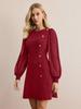 Damska Wiosenna Sukienka z Okrągłym Dekoltem, Zapinana na Zatrzaski, Dopasowana, z Długim Rękawem, w Jednolitym Kolorze