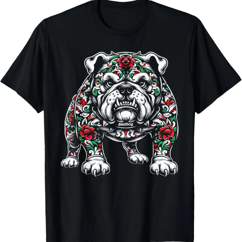 Buldog Kwiatowy Czerwona Róża Męska Damska Koszulka