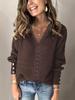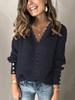 Damski sweter z koronkowym dekoltem w serek, luźny, z długim rękawem - Elegancki jednolity kolor na jesień/zimę