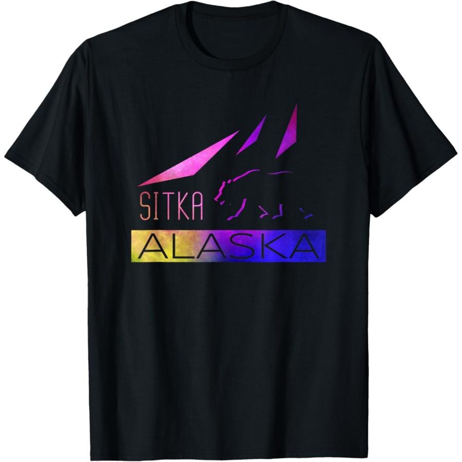 Sitka - Alaska - AK - Colorful Bear and Mountains T-Shirt