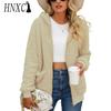 HNXC Women's Autumn and Winter Loose Lapel Large Pocket Zipper Plush Coat