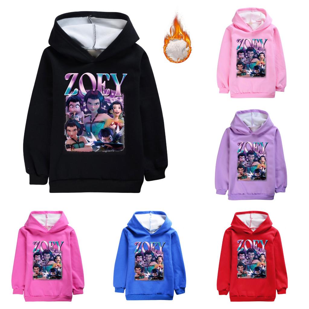 5002 Kids Girls Kpop Rumi Zoey Mira Zoey Print Long Sleeves Velvet Warm Fleece Thick Hoodie Top