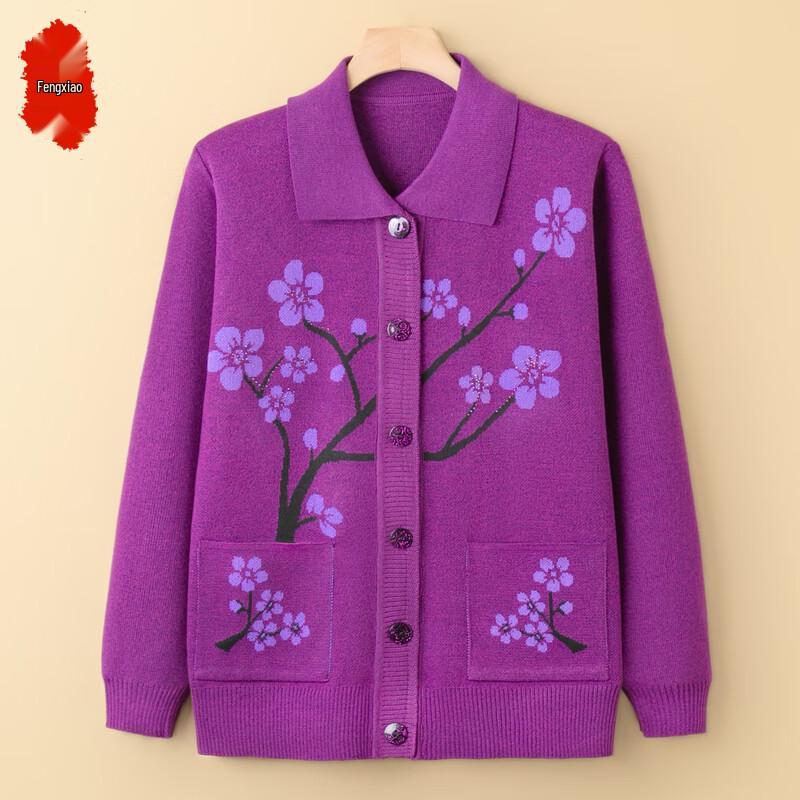 Mid-Aged & Elderly Women's Floral Knit Cardigan