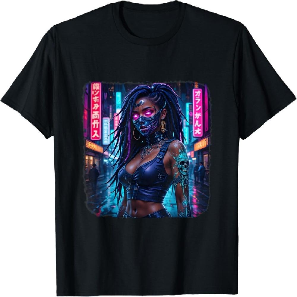 Black Cyberpunk Otaku Techwear Manga Anime Afro Streetwear T-Shirt