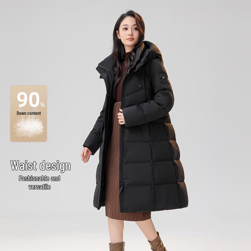 SNOWFLYING Women's Elegant Cinch-Waist Long Down Jacket