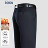 Experience comfort and style with ROMON Men's Autumn/Winter Stretch Casual Wool Blend Trousers. Crafted from a premium blend including wool, viscose, and spandex, these straight-fit pants offer warmth, micro-elasticity, and a natural waist for everyday wear and professional settings. Featuring a solid color design and zipper fly, they blend high-end fashion with minimalist elegance.