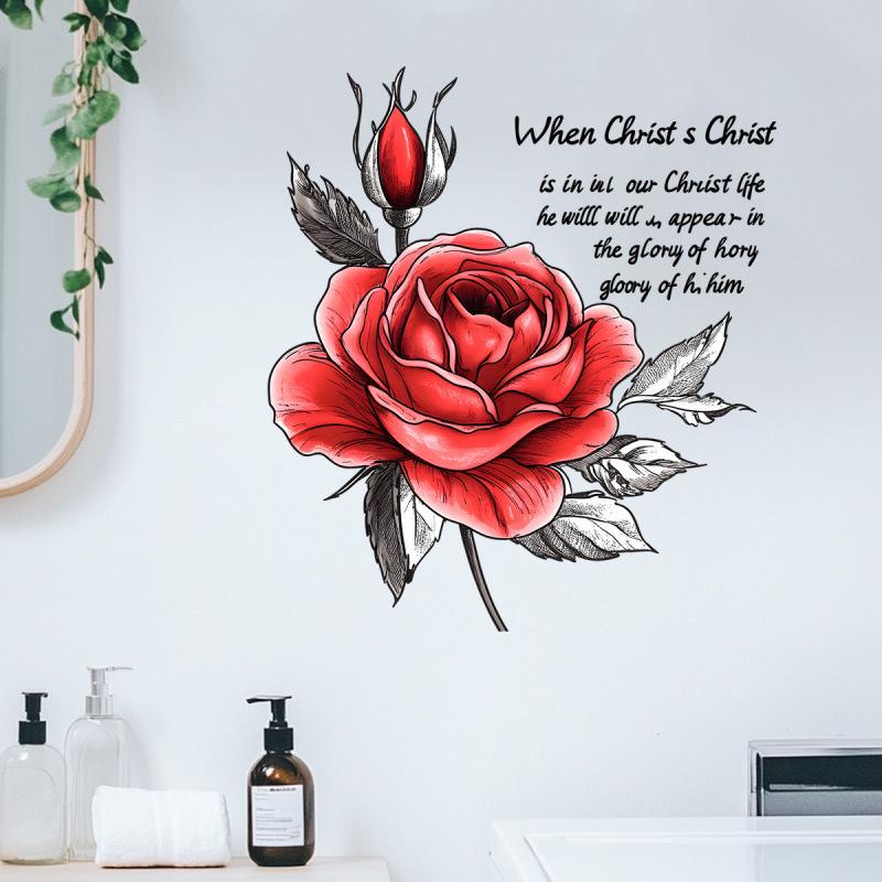 Kreskówkowy Różowy Zdejmowany Naklejka Ścienna do Salonu Sypialni Dekoracja Domu Zabawny Kwiatowy Peel and Stick Wall Art