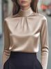 Damska bluzka z wysokim dekoltem i falbanami, elegancki top z długim rękawem, cztery opcje kolorystyczne