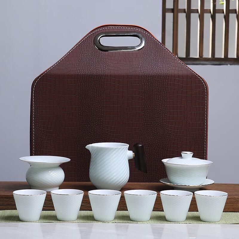 Ribbed Mutton Fat Jade Porcelain 10-Piece Tea Set