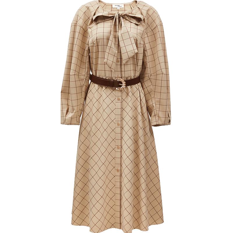 Veromoda Elegancka damska sukienka koszulowa w kratę z kokardą i odpinanym paskiem