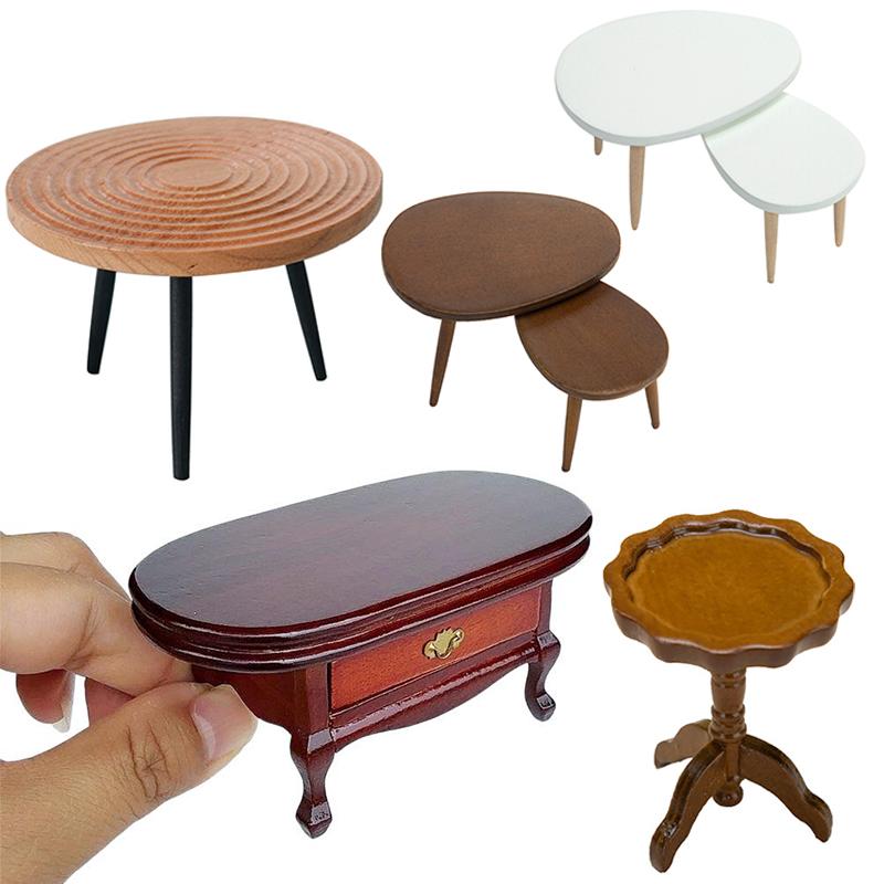 1/12 Dollhouse Coffee Table Tea Table With Drawers Doll Home Living Room Furniture Ornament Dolls House Micro Scene Decoration