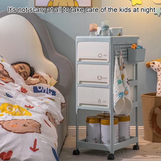 Ruchomy wózek pomocniczy Wózek do przechowywania w pokoju dziecięcym z szufladami i półką Ruchomy organizer Wózek do przechowywania z haczykami i wyjmowanymi koszami dla dziecka