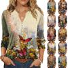 Damska luźna bluzka retro z nadrukiem i 7-calowym rękawem