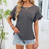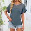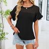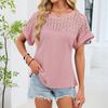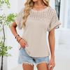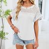 Women's Fashion Solid Color Round Neck Lace Lace Loose Short Sleeve T-shirt Top