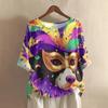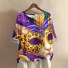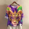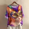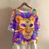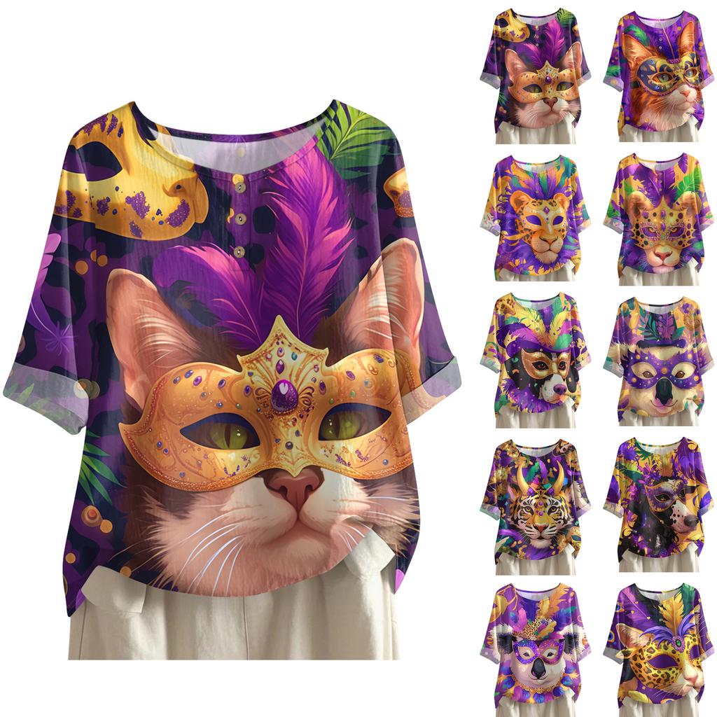 Women's Fashionable And Casual Shirt Half Sleeve Round Neck Print Cotton And Linen Blouse Top