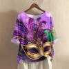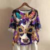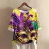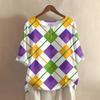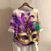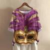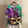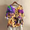 Damska casualowa i wygodna bawełniano-lniana bluzka z okrągłym dekoltem, średniej długości, z modnym nadrukiem