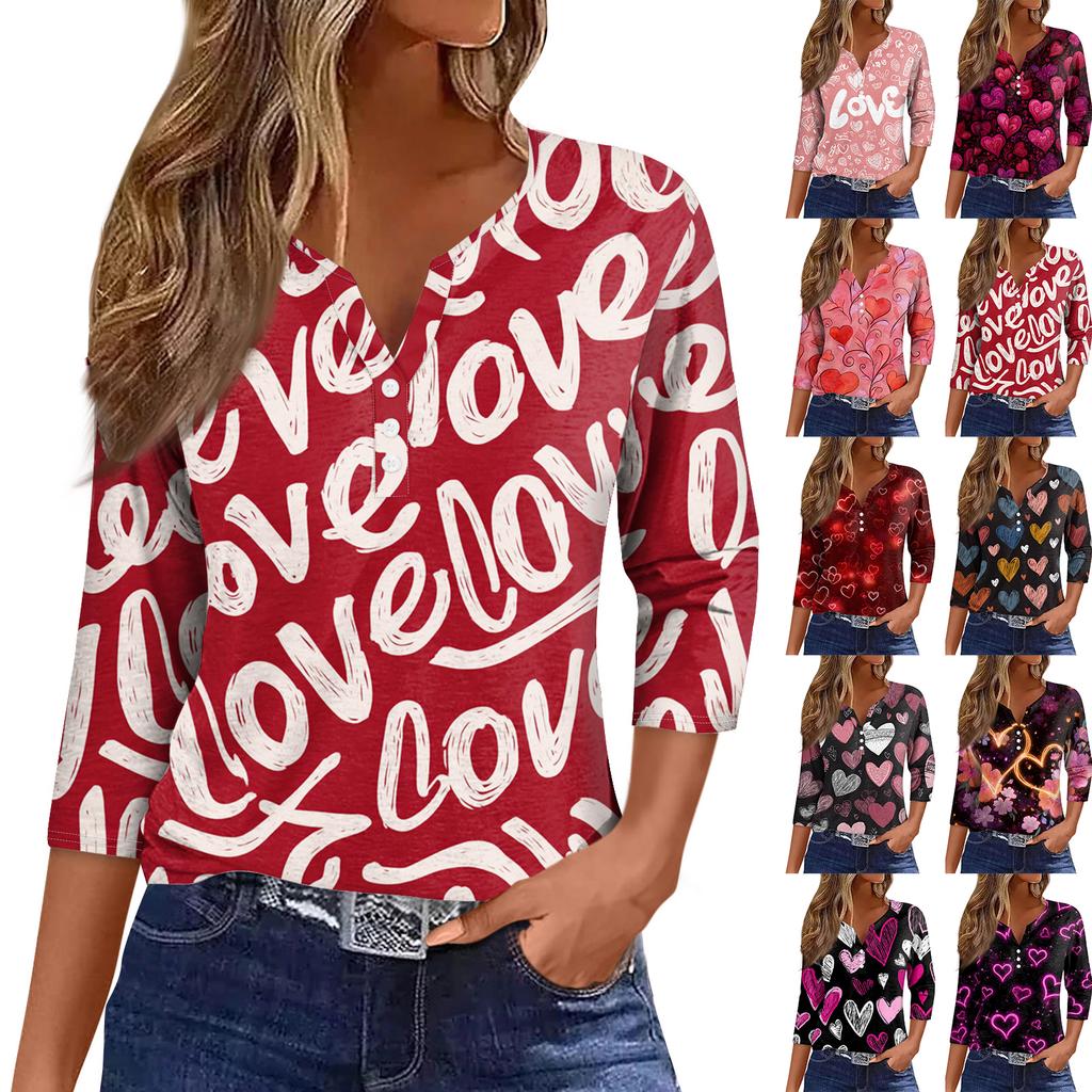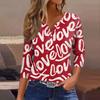 Women's collar Valentine's Day print short-sleeved T-shirt top