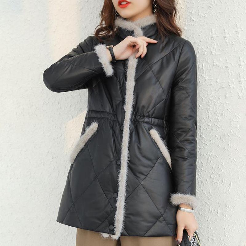 Winter Women's Thickened Padded Jacket Stand Collar Slim Fit Padded PU Leather Coat