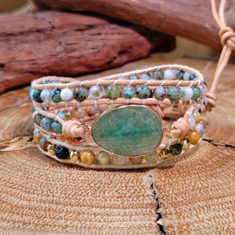 Elevate your everyday style with this exquisite handmade Bohemian bracelet featuring natural green agate and turquoise stones. Perfect for those who love unique, artistic jewelry, this three-layer braided bracelet combines creativity with fashion in a stunning accessory.