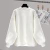 Women Loose Round Neck Long Sleeve Pullover Sweatshirt Top with Zipper Pocket Short