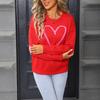 Damski modny sweter w kształcie serca, luźny i wszechstronny sweter dziergany na Walentynki
