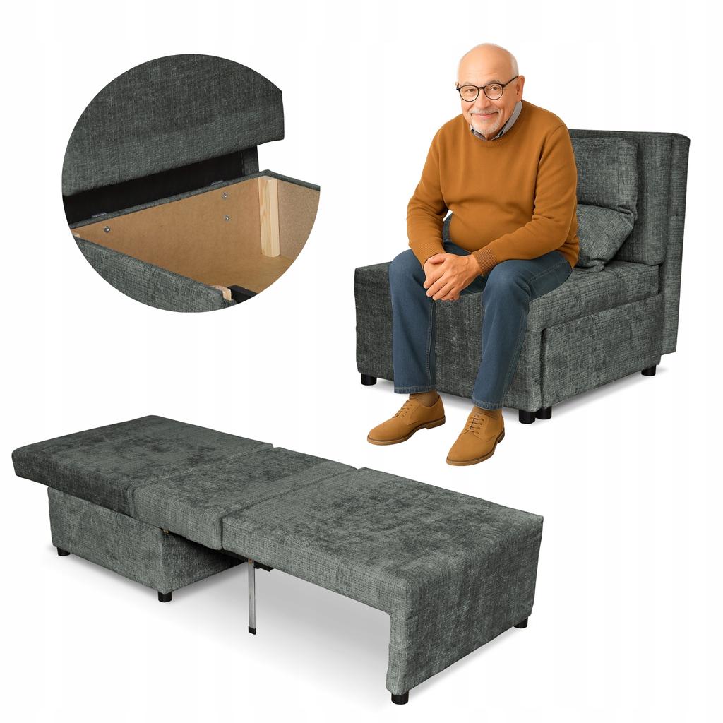 Fotel rozkładany z funkcja spania KIMO pojemnik na pościel Ramona ciemnoszary