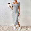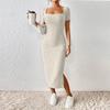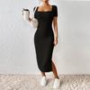 Women's New French Stand Alone Square Neck Short Sleeve Side Slit Dress