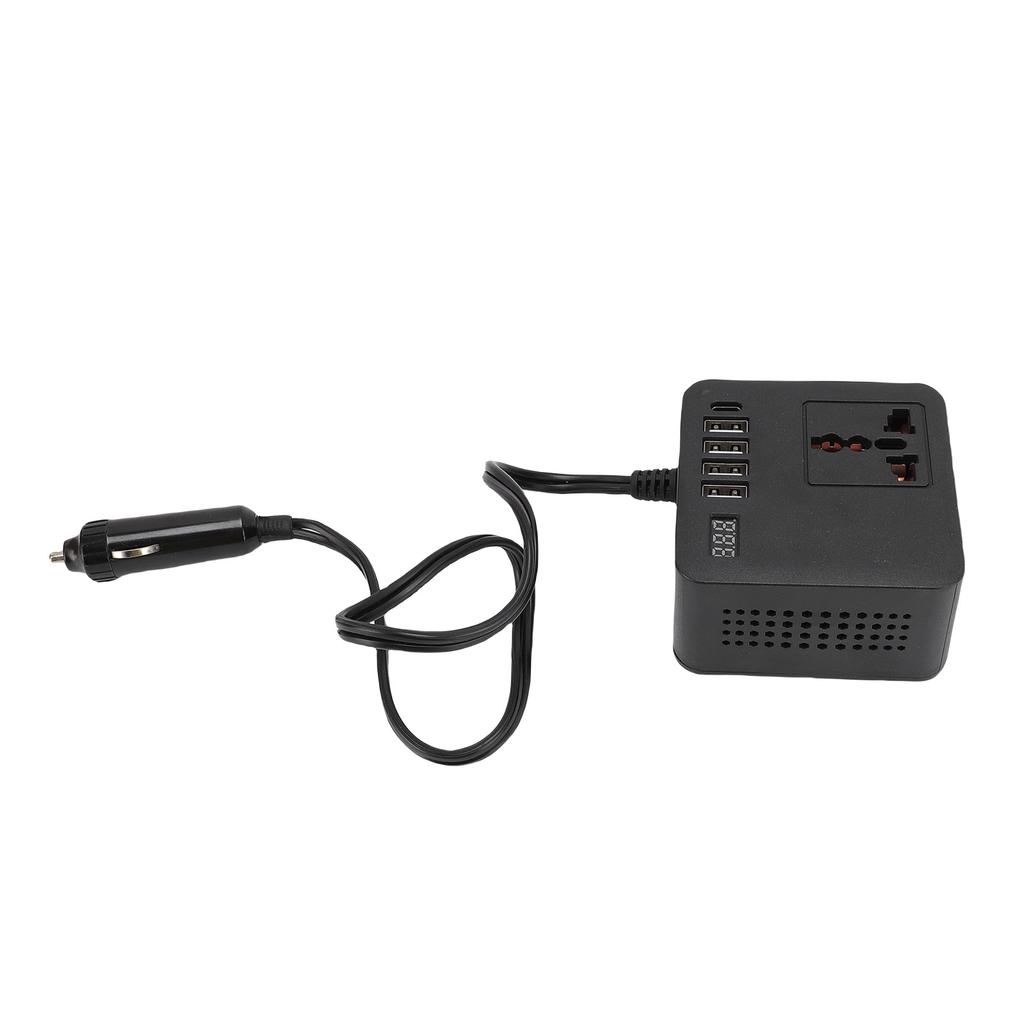 150W Car Inverter 12V 24V to 220V 110V Car Plug Outlet Inverter with Cigar Lighter Input 4 USB 1 Type C Port Universal