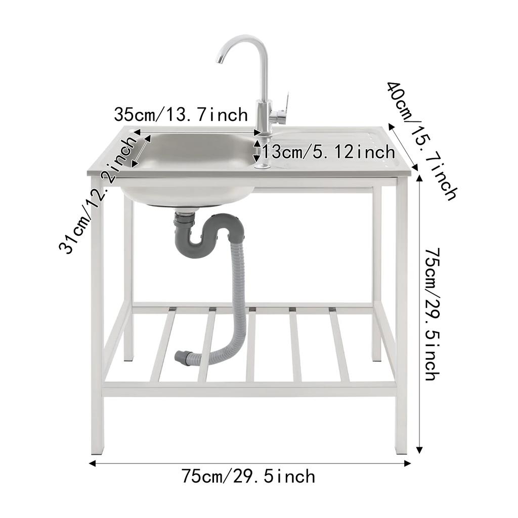 Zlewozmywak z blatem roboczym i szafką, jednokomorowy zlewozmywak kuchenny, wolnostojący zlewozmywak z baterią, rurą odpływową i rurą dopływową
