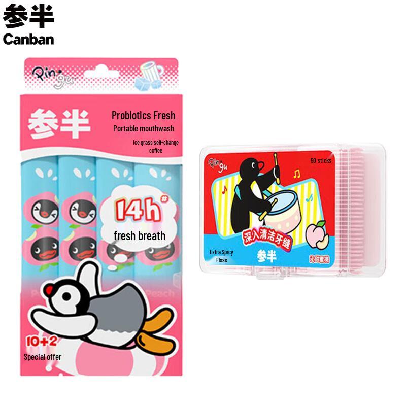 Cenpan Ice Peach Mouthwash & Pingu Dental Floss Set