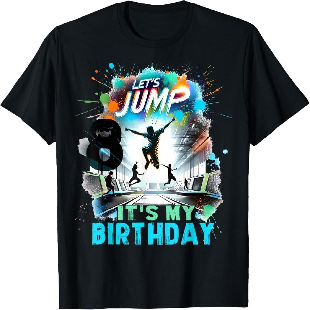 Kids Let's Jump It's My 8th Birthday Trampoline 8 Year Old T-Shirt