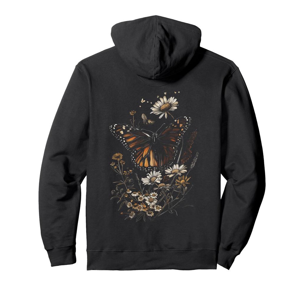Vintage Monarch Butterfly Floral Daisy Flower Girl Botanical Mom Hoodie