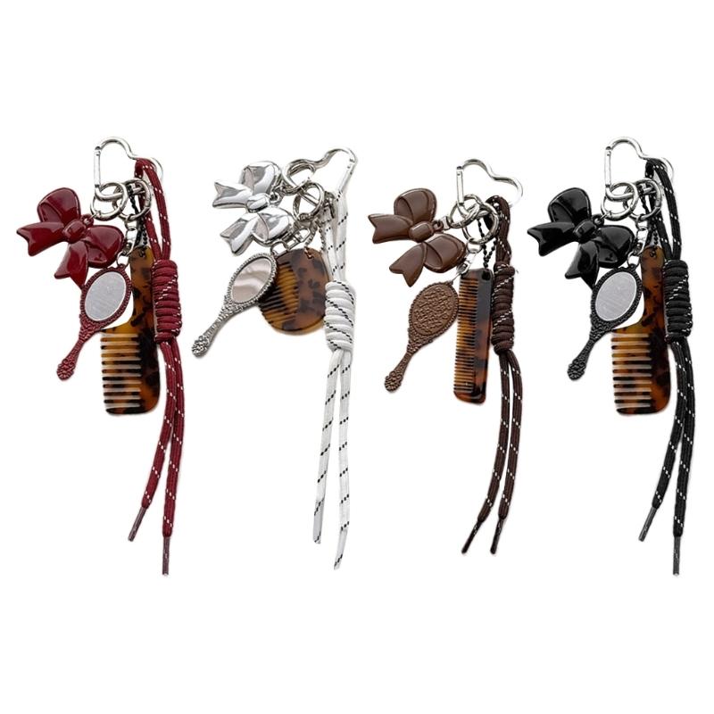 Fashionable Acetate Comb Mirror Keychain Multifuntional Key Accessory Suitable for Youthful Women and Girl Outdoor Use
