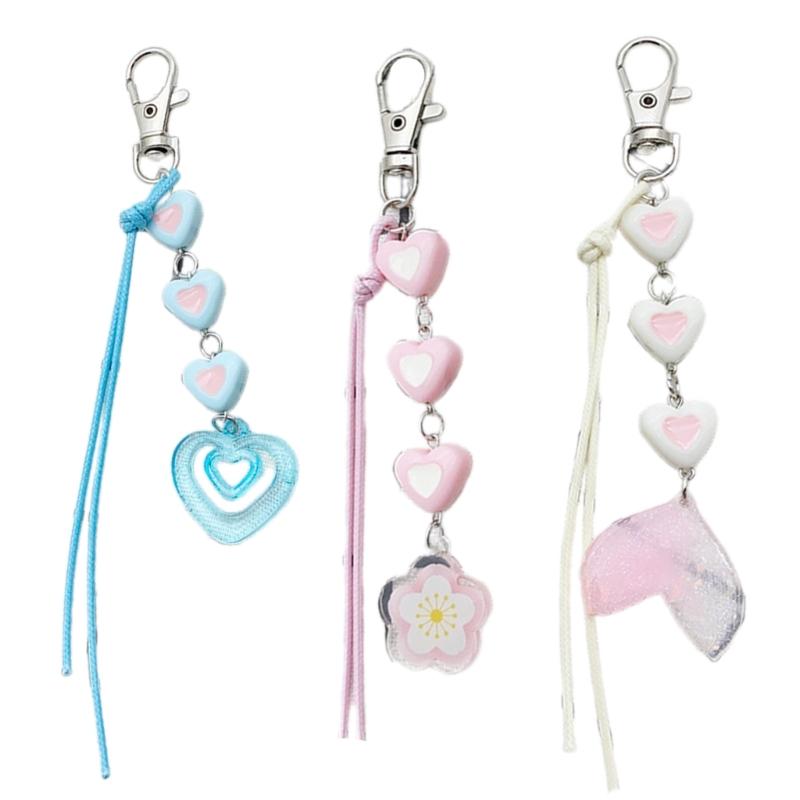 Handcrafted Key Chain Heart/Flower/Fishtail Pendant Keyring Acrylic Keychain Colorful Key Rings Bag Charm Ornament