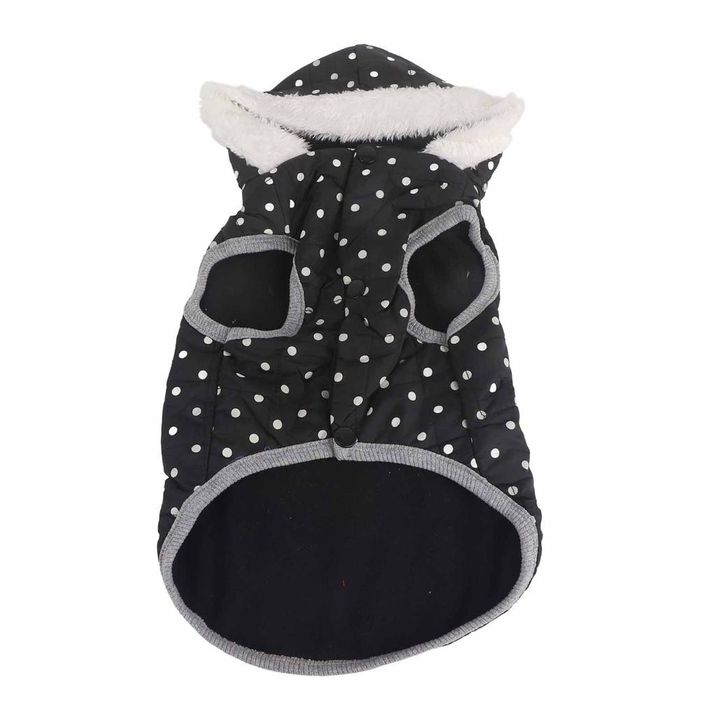 Zimowa kamizelka dla zwierząt stylowa w kropki pikowana pogrubiona z kapturem kurtka na zimną pogodę dla małych średnich psów kotów