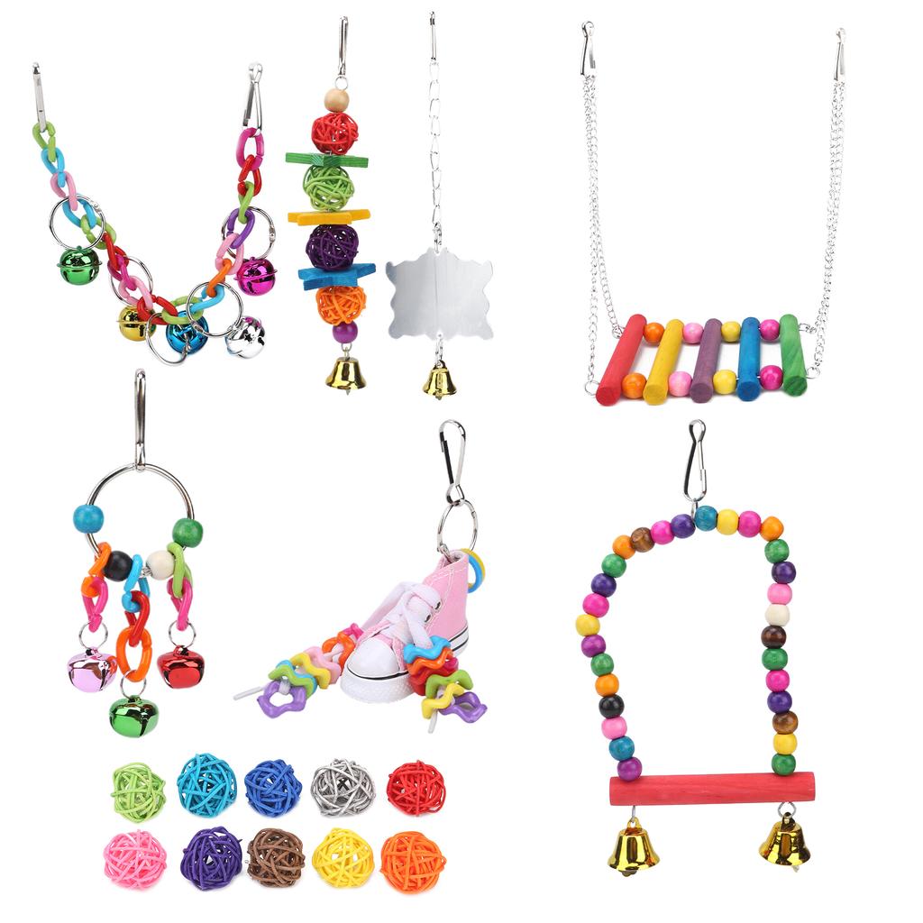 17 Packs Bird Toys Sepak Takraw Hanging Chain Swing Bell String Set for Small and Medium Parrots