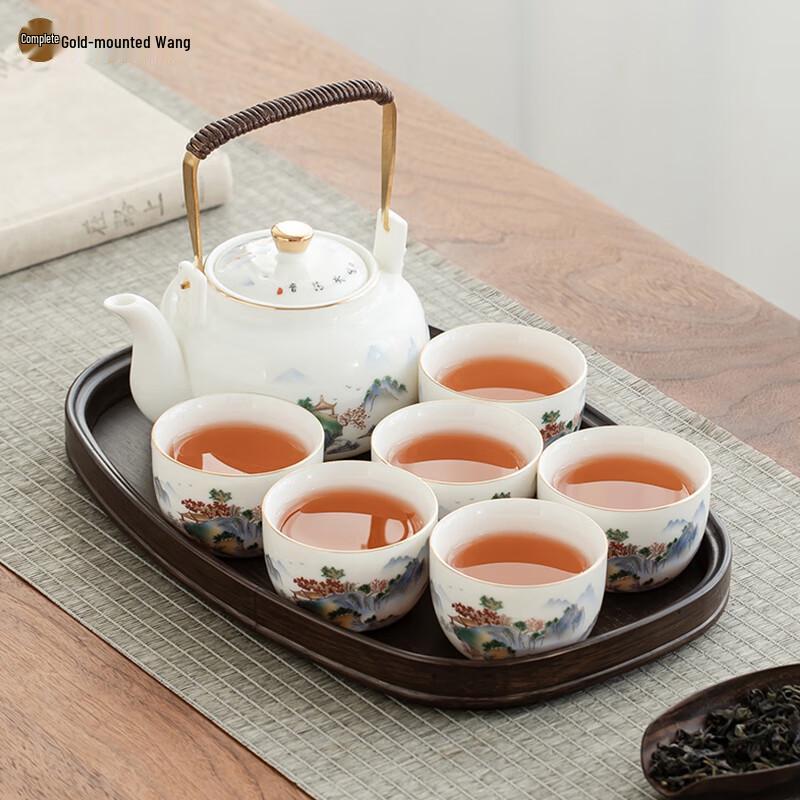 High-End Mutton Fat Jade Porcelain Kung Fu Tea Set with Landscape Design