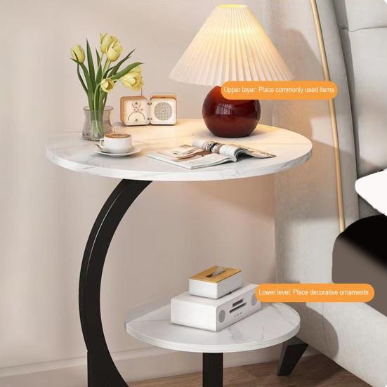 Wyposażony w trwały, wodoodporny, olejoodporny, odporny na zarysowania blat, jest odporny na zużycie i prosty w czyszczeniu wilgotną szmatką.. Dwuwarstwowa konstrukcja do przechowywania pozwala utrzymać małe przedmioty, takie jak książki i piloty, w porządku, redukując bałagan..
