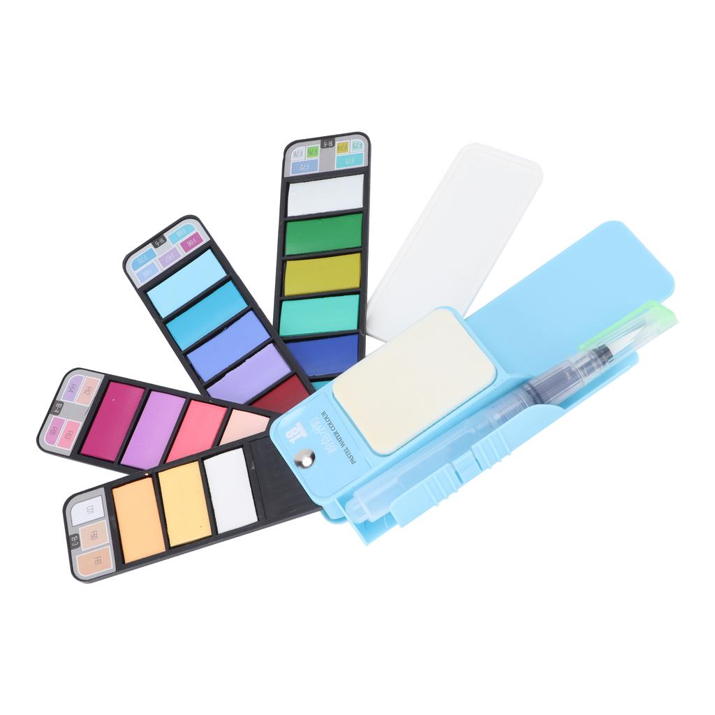Farby akwarelowe w kostkach 18 kolorów Przenośne składane w kształcie wachlarza z pędzelkiem do wody na urodziny święta Boże Narodzenie