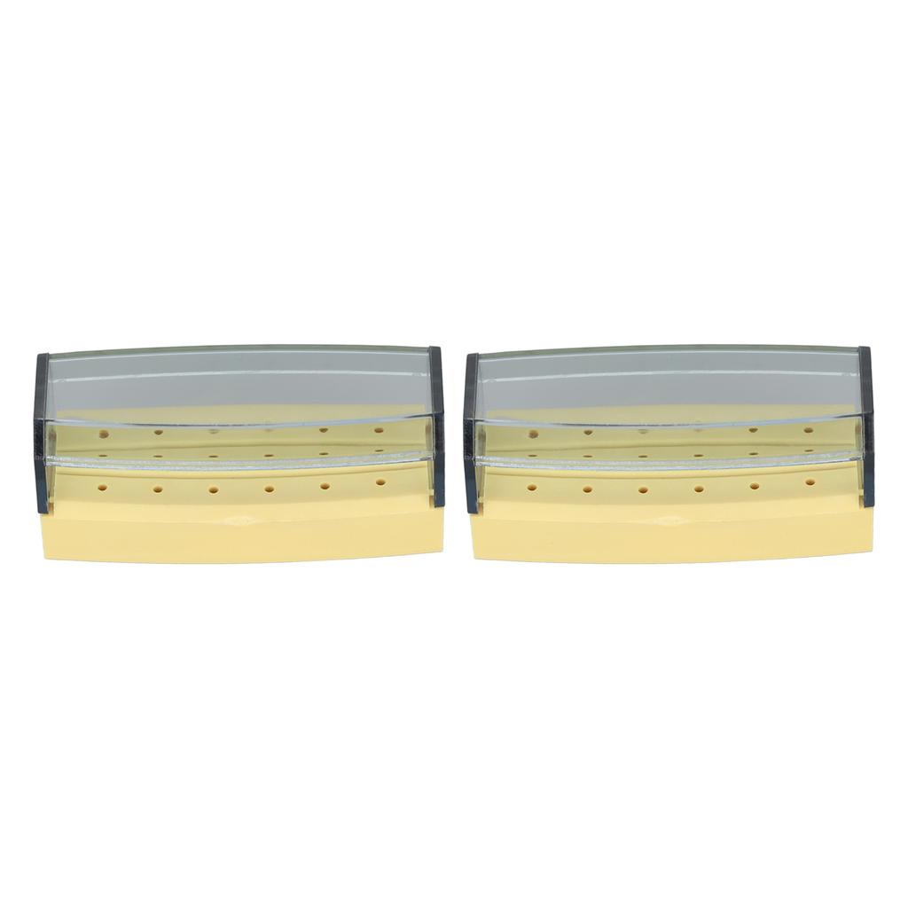 2pcs Dental Bur Holder Box 18 Holes Bur Cleaning Autoclavable Case Organizer for Dentist Laboratory Yellow